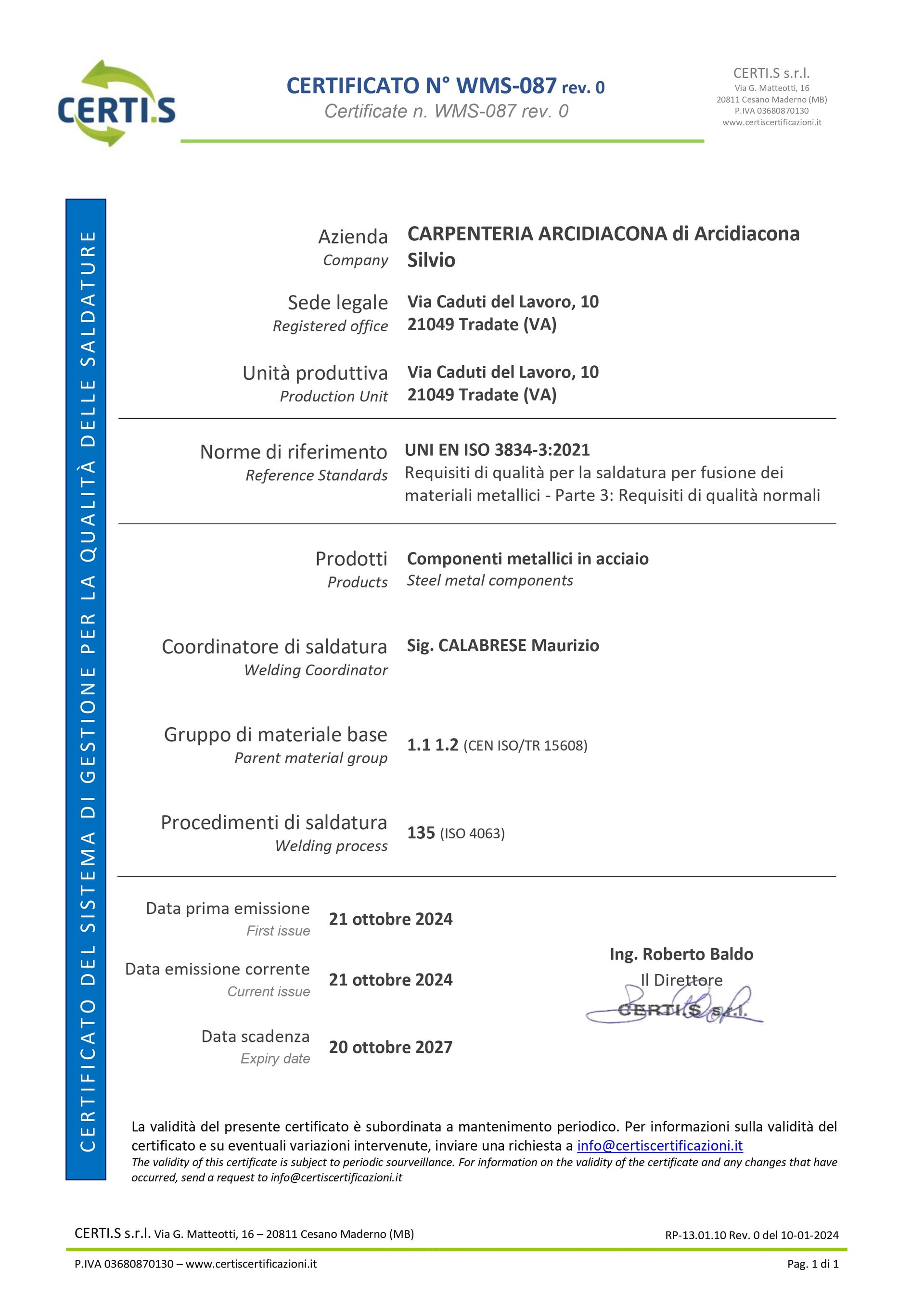 Carpenteria Arcidiacona di Arcidiacona Silvio